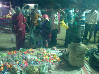 ఆలయము ముందు కొబ్బరి కాయలు సమర్పిస్తున్న భక్తులు